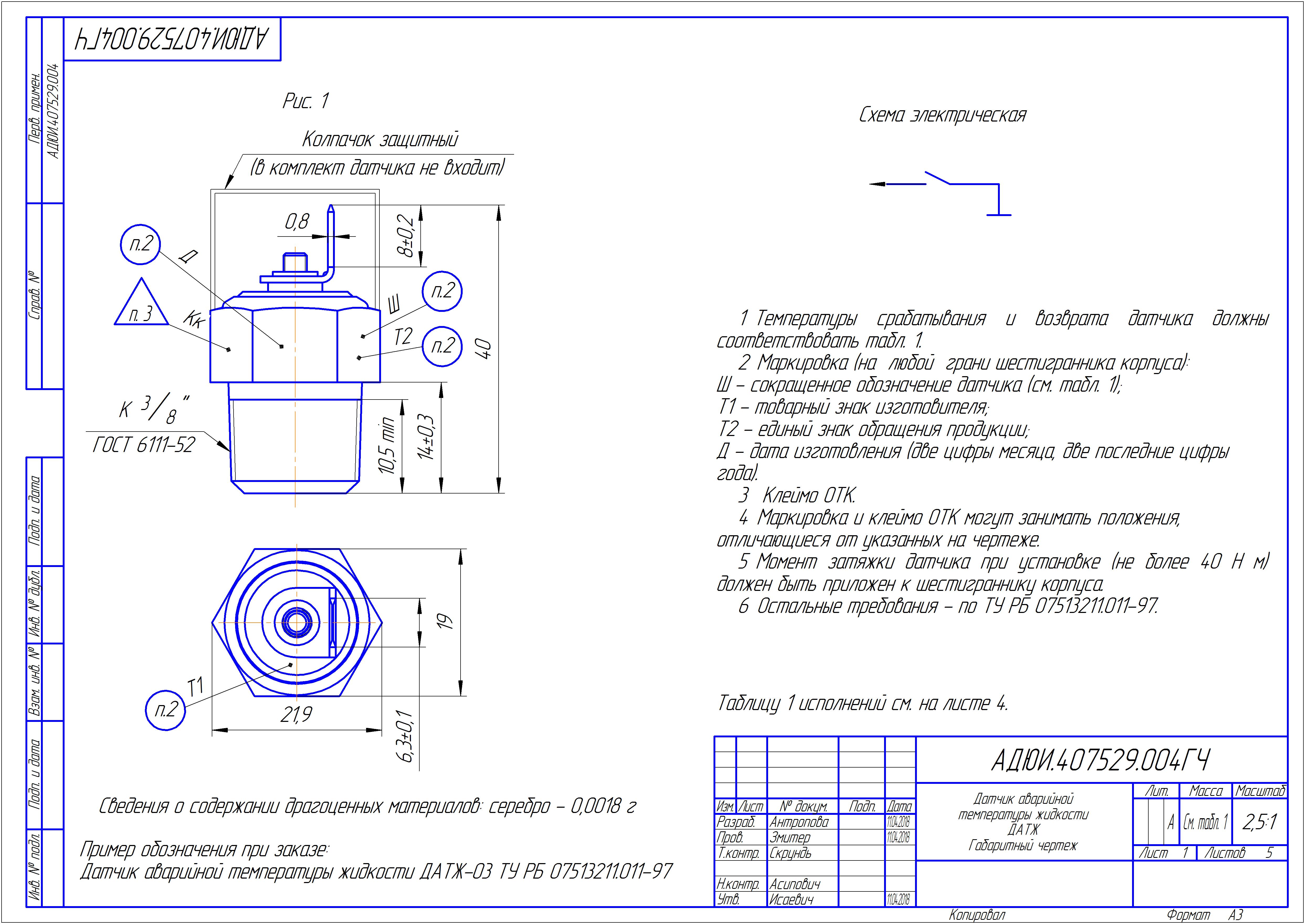 Датчик аварийной температуры жидкости ДАТЖ