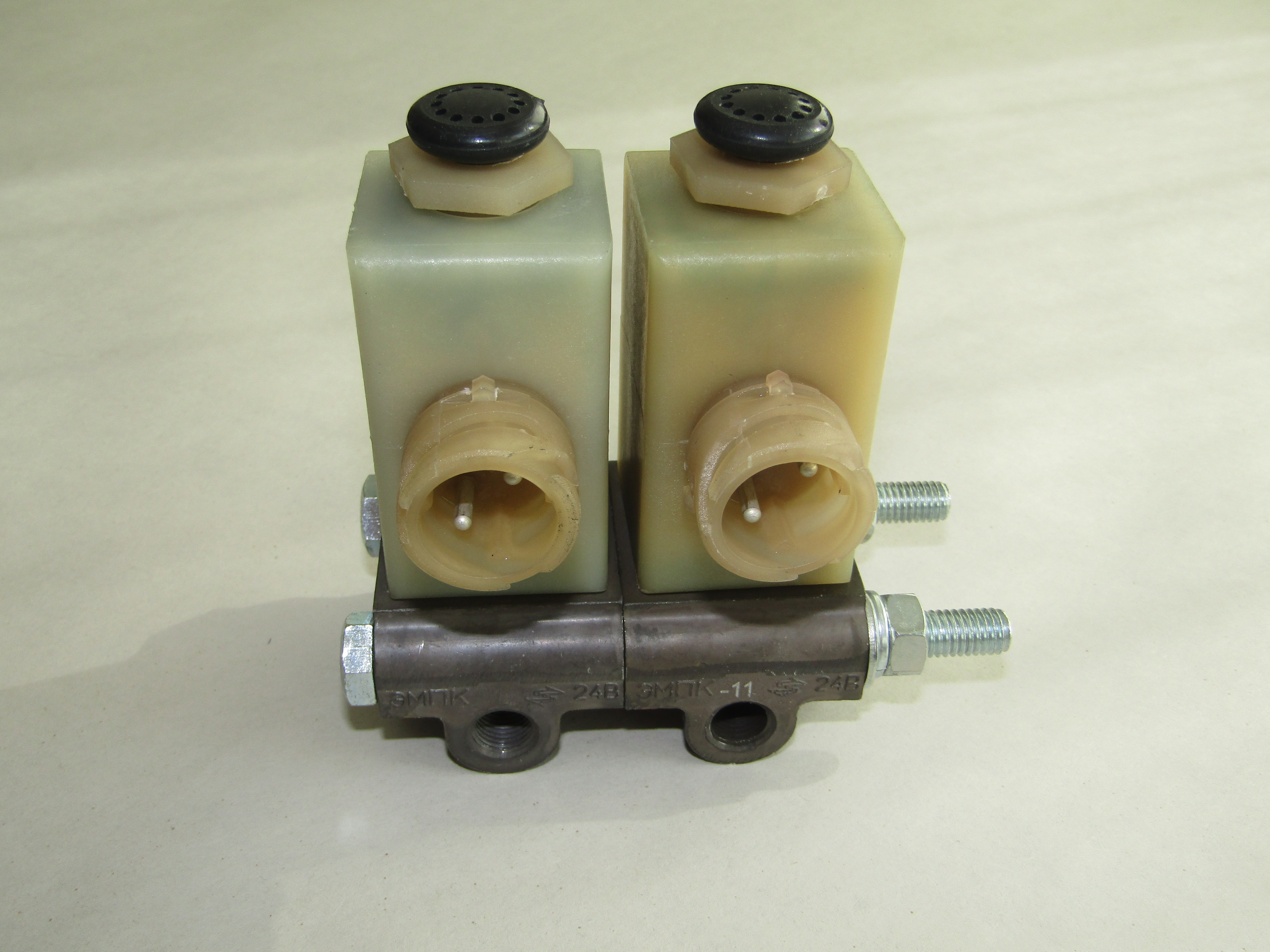 Состоит из двух электромагнитных клапанов, имеет один вход и два выхода. |