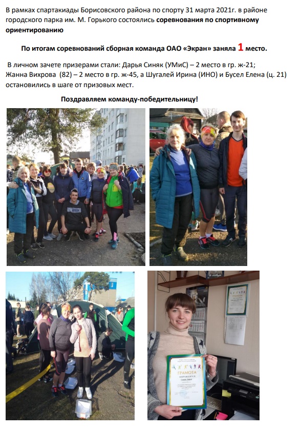 23-24 января в а/г. Старо-Борисов состоялись соревнования по лыжным гонкам памяти комсомольца-дружинника Гайдука среди предприятий и организаций Борисовского района. Команда от нашей организации выступили успешно и заняли второе место по итогам двух дней соревнований. Женская эстафета принесла нашей команде 1 место. В личных выступлениях |