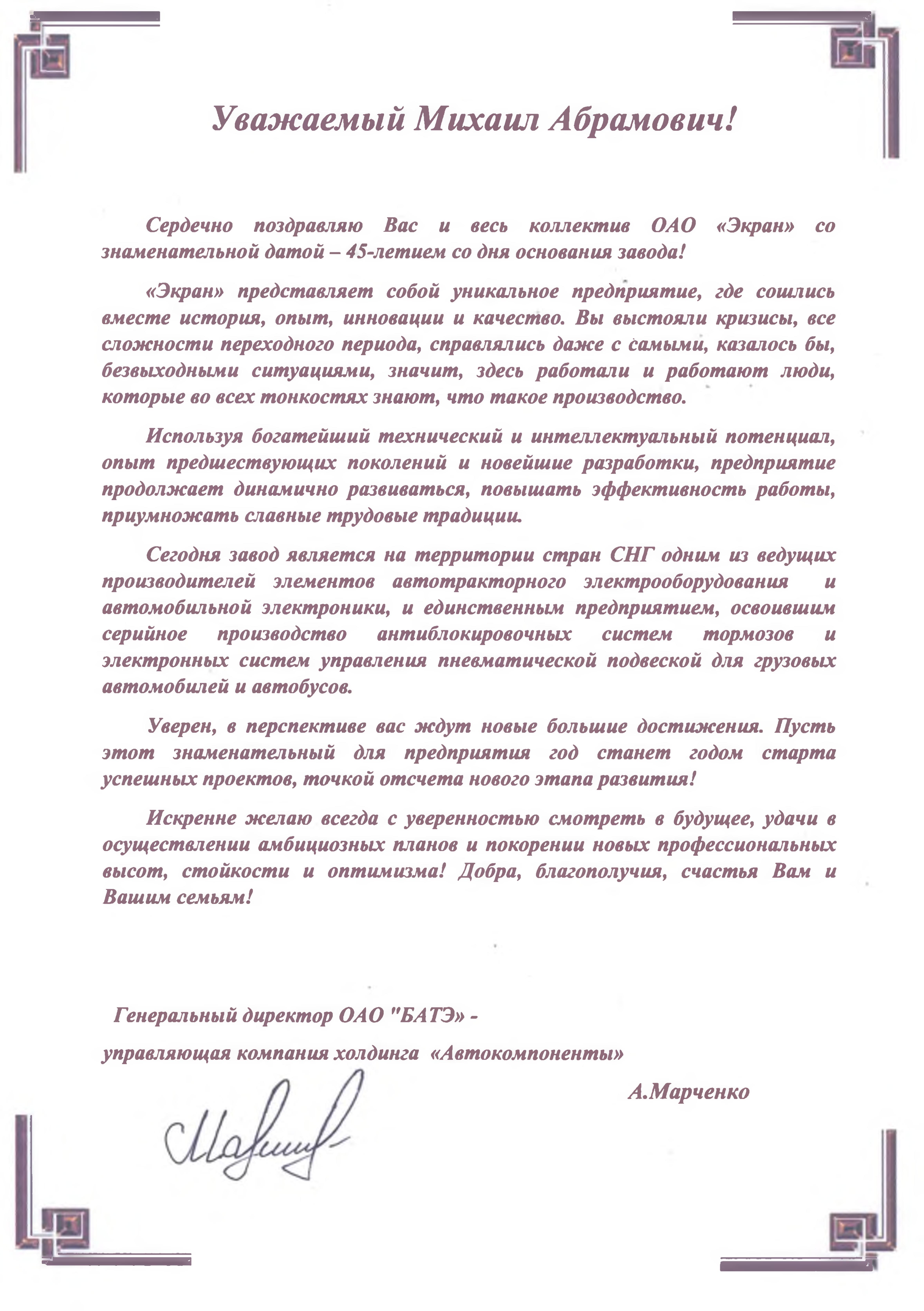 7 января 2021 года Экрану 45 лет. Приказом ОАО «БАТЭ» - управляющая компания холдинга «Автокомпоненты» №269 за многолетний добросовестный труд, значительный личный вклад в решение задач, стоящих перед промышленной отраслью, высокий профессионализм, образцовое выполнение служебных обязанностей Почётной грамотой ОАО «БАТЭ» - управляющая компания холдинга «Автокомпоненты» были награждены работники ОАО «Экран», проработавшие на предприятии 45 лет со дня основания.