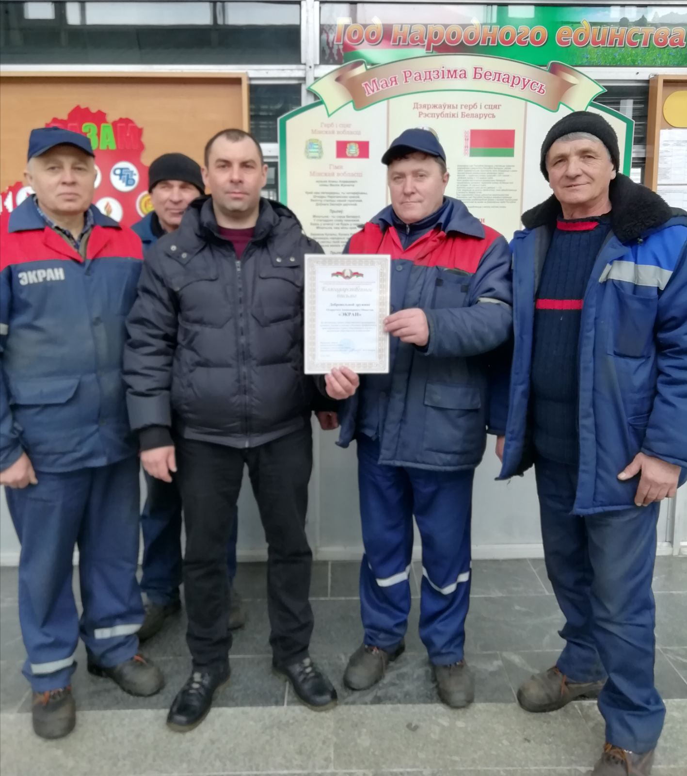 Добровольная дружина ОАО «Экран» в 2020 году в составе 15 человек осуществляла охрану правопорядка на территории города Борисова согласно графика дежурств во главе с командиром дружины – Гарбузовым Дмитрием Сергеевичем. По итогам 2020 года за обеспечение охраны общественного порядка, активное участие и помощь субъектам профилактики в охране общественного порядка, добровольной дружине ОАО «Экран» в торжественной обстановке вручено Благодарственное письмо. Поздравляем добровольную дружину ОАО «Экран» и благодарим их за хорошую и слаженную работу!