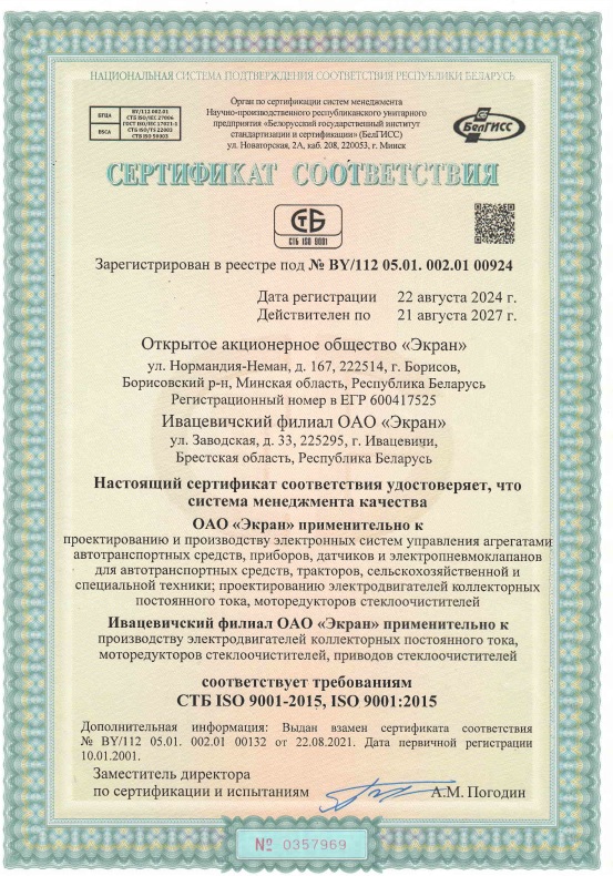 Органом по сертификации систем менеджмента Научно-производственного республиканского унитарного предприятия «Белорусский государственный институт стандартизации и сертификации» (БелГИСС) ул. Новаторская, 2А, каб. 208,220053, г. Минск